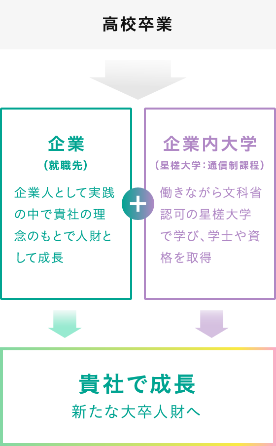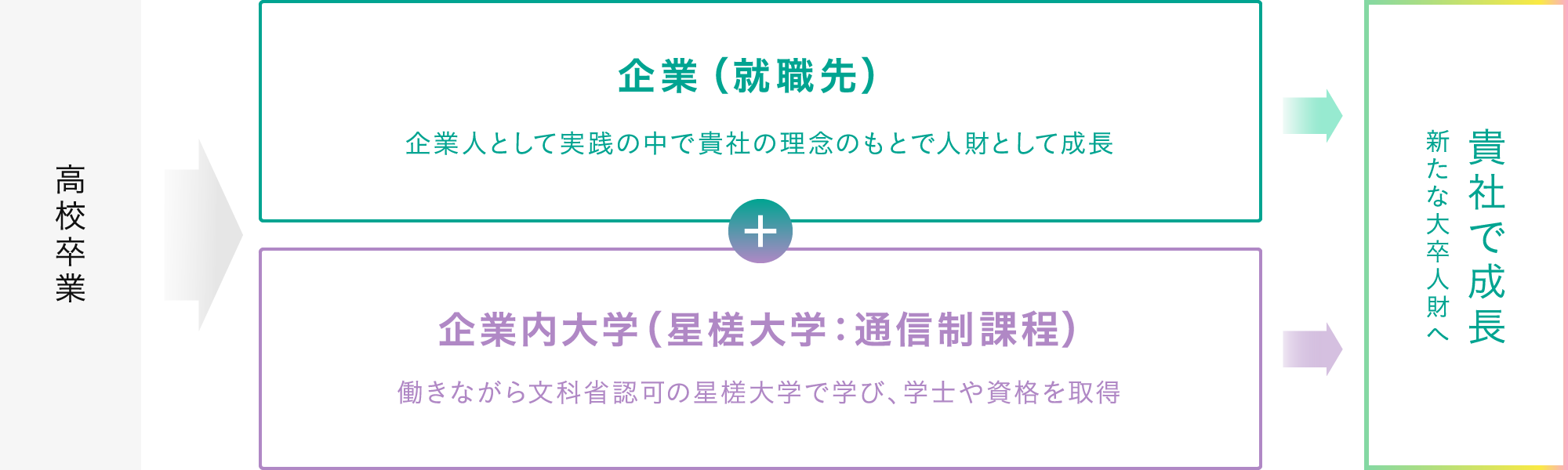 - 優秀な高卒人財を採用し、大卒人財として育成